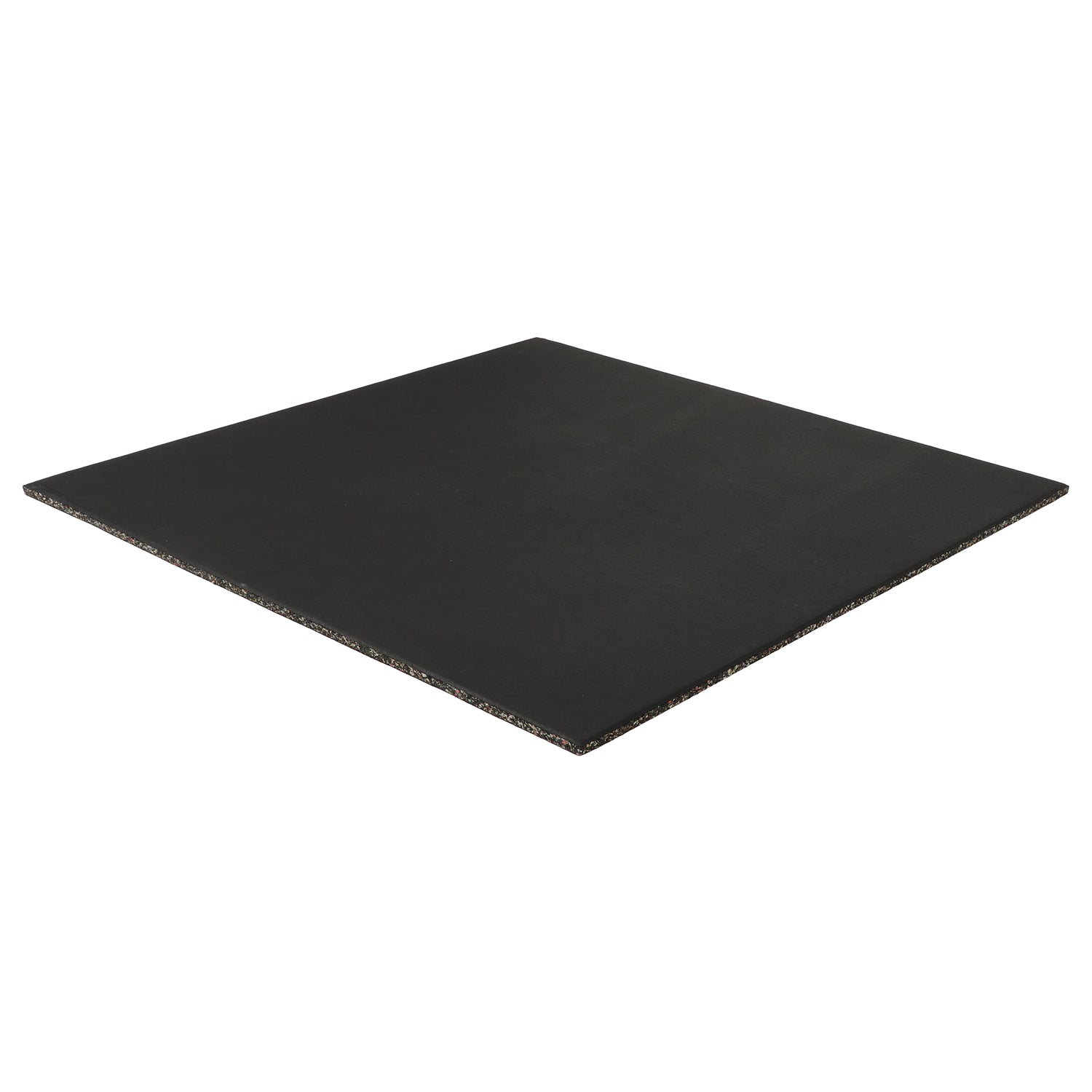 The rubber tips on the bottom layer are excellent at vibration dampening, so the mat will not slip or break even when dropping a barbell or dumbbell. At the same time, it is hard enough that you won't feel any sinking even when doing heavy squats.